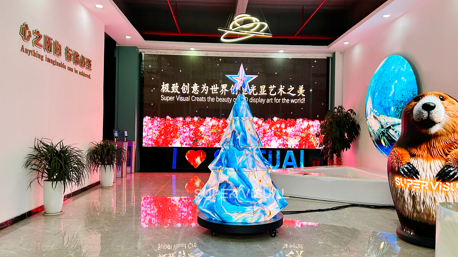 LED圣誕樹(shù)是行業(yè)首創(chuàng)新品,自主研發(fā)且獨(dú)有的模組切斜邊設(shè)計(jì)工藝,讓棱角更加平滑,縫隙更小,采用點(diǎn)間距為P2,開(kāi)發(fā)了多款異性模組,模組設(shè)計(jì)了GOB,具有防潮、防塵等特點(diǎn)。